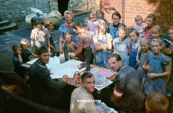 Austrian Luftwaffe recruiting officers doing presentation for school kids. Vienna Wien Austria 1942