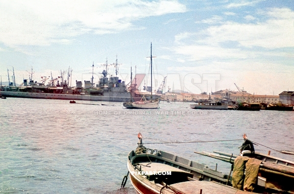 Captured French marine navy battle ships in the port of Marseille France 1940
