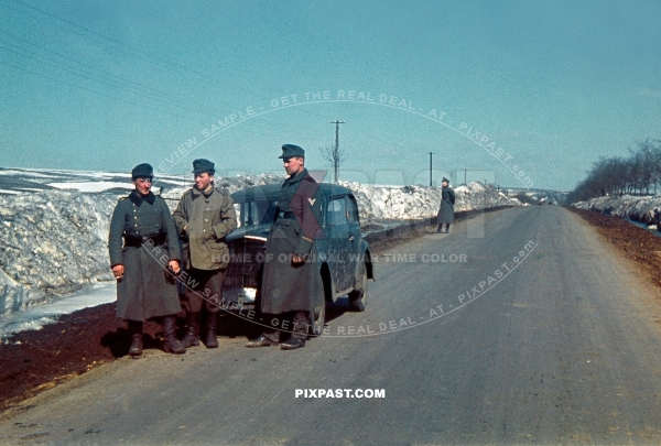 German army Jager hunting unit beside their Opel Olympia staff car in Norway 1942