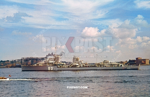 German destroyer Z12 Erich Giese, a Type 1934A class destroyer of the Kriegsmarine. Pegelturm gauge tower in Flensburg 1939