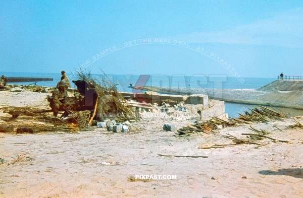 German PAK artillery cannon positioned on the Normandy coast towards England. France 1940