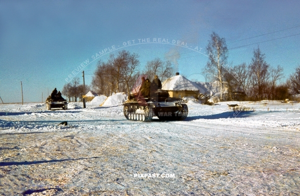 German Panzer Tank Model 3 with short barrel cannon in winter snow camouflage. 3Rd Panzer Division. Russia winter 1942