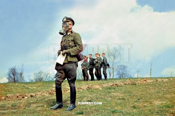 German Radio Signals officer Funker wearing army gas-mask in Russia 1942. Nachrichten Abteilung Signals 297 Infantry Division