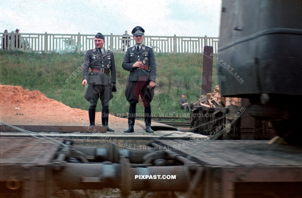 Luftwaffe officers smoking beside train transport. Smolensk Russia 1942. Luftlotte 2. Headquarters command. Bindewald