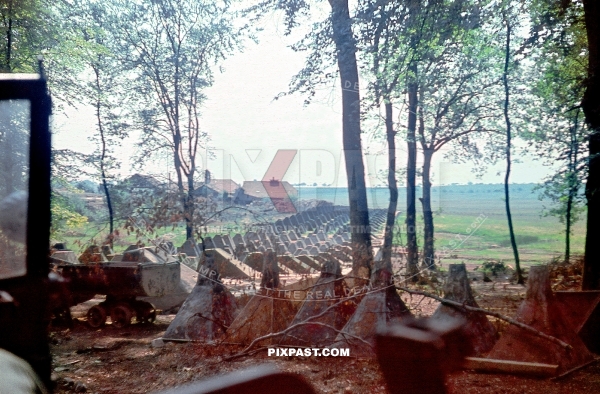 The German French Westwall Dragons Teeth concrete bunker fortification anti tank. France 1940