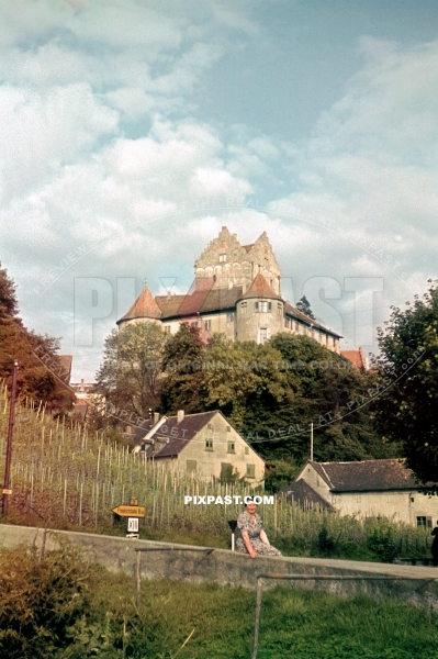 Women sitting in front of the Meersburg Castle. Burg Meersburg. Alte Burg. Boden See. Baden Wurttemberg Germany 1939