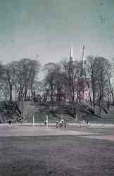 German School Children playing football infront of Lubeck Church 1943