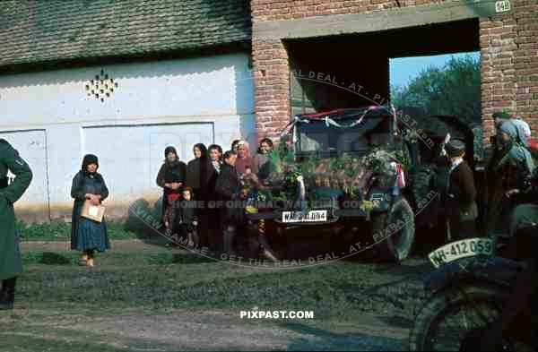 103 Schutzen Regiment 14th Panzer Division, April 1941, Yugoslavia, flowers and decorations, Krupp Protze L2H 143