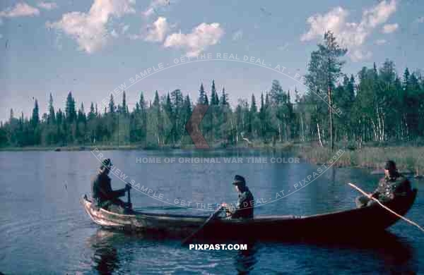 134th Gebirgsjaeger, Finland 1944, german soldier in boat on river