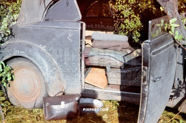 1938 Opel Super 6 Cabriolet staff car hidden in bushes in Russia 1941. 297 Infantry Division