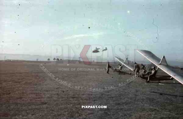 2 German Luftwaffe Glider Planes flying over Lubeck airport 1943 trainning