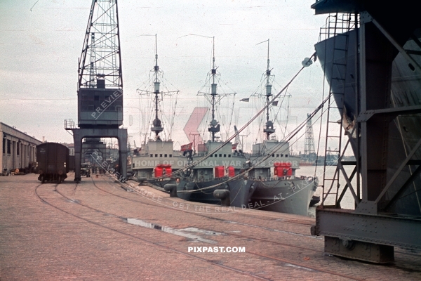 3 German Kriegsmarine M1 Minesweeper Minensuchboot in the Port of Bordeaux France June 1940