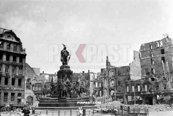 69th infantry division - Leipzig - Germany - 1945, WW1 Victory Monument, market square, marktplatz leipzig, ruins, bombed