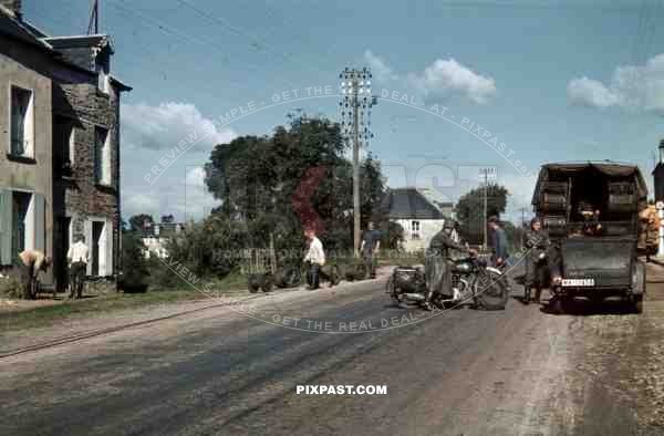 94. Infantry Division Radio Funker Signals Unit install telephone lines in french village, France 1940.