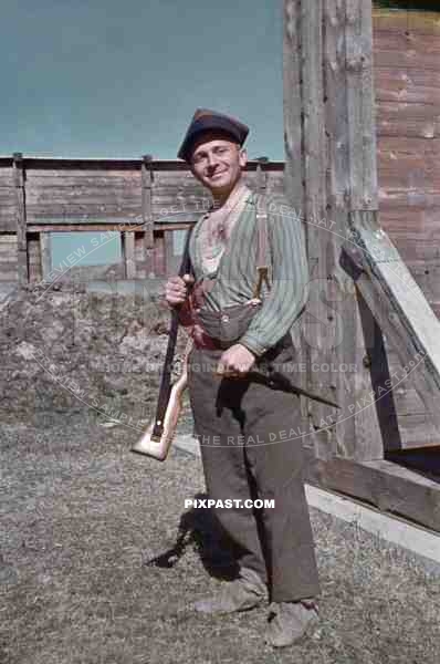 A German soldier wearing a captured Polish army hat. Shooting Training grounds in Poland 1939