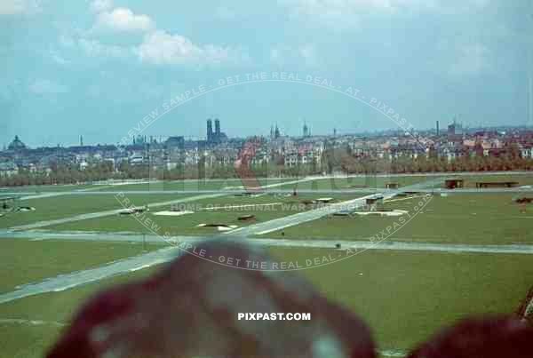 A View of Munich City from the Bavaria Statue / Theresienwiese being used as anti-aircraft Flak base. Munich Germany 1942