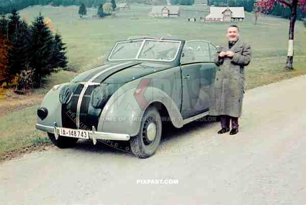 Adler 2.5L Convertible 1937. Berlin family doing holiday in Sudetenland Czechoslovakia 1939