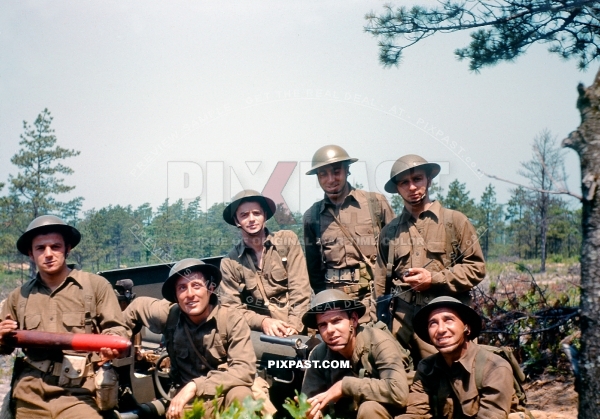 American army artillery unit training in California 1942. Equipped with British Tommy helmets.