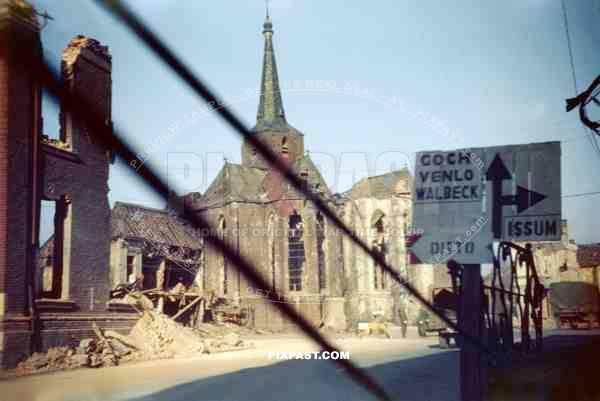 American MP Military Police doing traffic duty beside the Church of St. Maria Magdalena Geldern September 1944