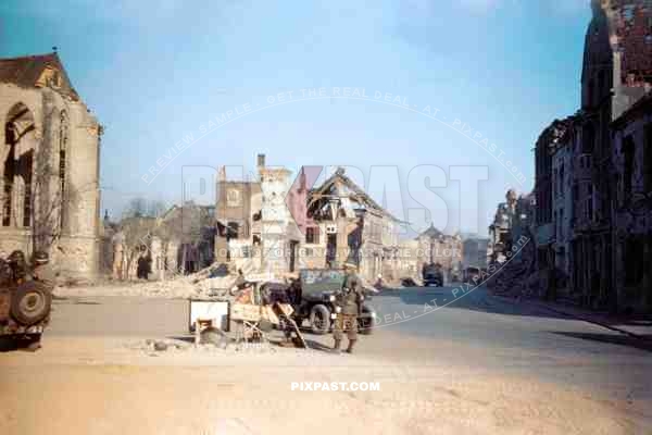 American MP Military Police doing traffic duty beside the Church of St. Maria Magdalena Geldern September 1944944