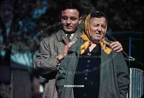 American OHIO Family portrait vintage car son and mother America 1942 Kodachrome