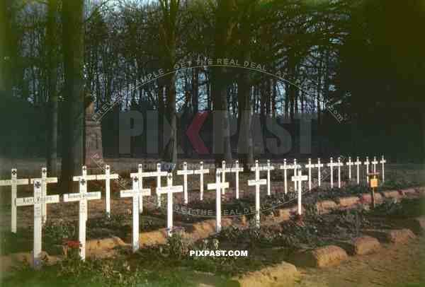 American slide of German war graves near Wesel Germany May 1945. These soldiers were defending the rhine crossing 1945