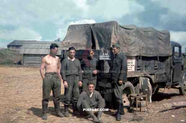 Army mechanics beside repair truck in Khislavichi, area Smolensk, Russia 1942, 10th Motorised infantry division