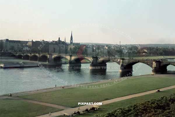 Augustusbrucke Bridge Dresden Saxony Germany 1939. Direction Altstadt over the Elbe River