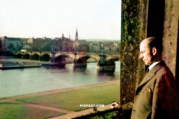 Augustusbrucke Bridge Dresden Saxony Germany 1939. Direction Altstadt over the Elbe River.
