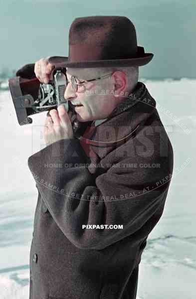 Austrian Hobby Photographer with camera in hand, Winter snow, Ginzling Austria 1939