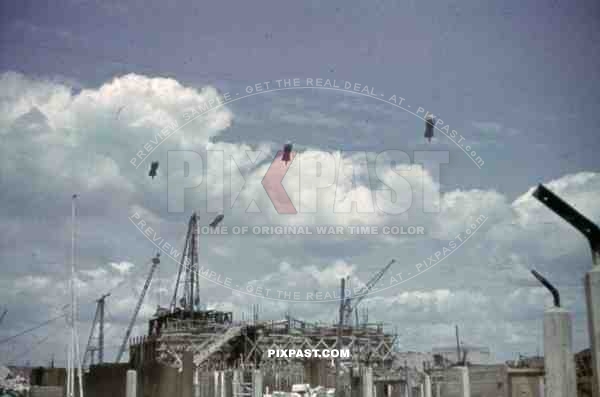 balloons over the newly built bunker in St. Nazaire, France 1942