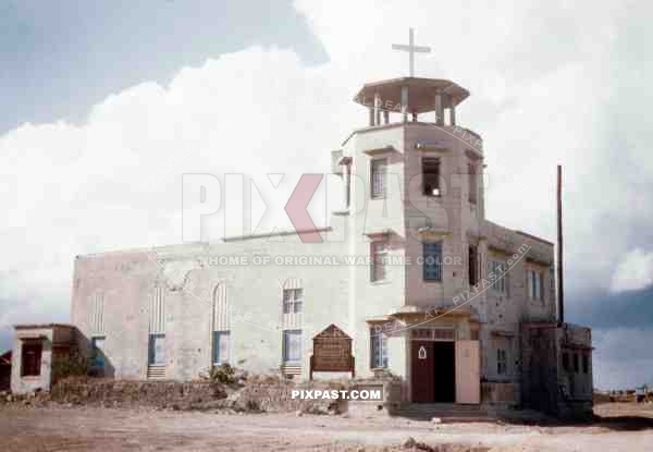 Battle damaged Christian Chapel. Capital Naha Okinawa 1945
