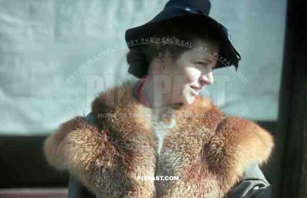 Beautiful young woman in Fur fashion and Hat, Frankfurt Germany. 1939.