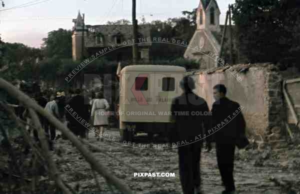 Bomb damage outside of Paris 1943, American aircraft day attack. French police and Luftwaffe soldiers.