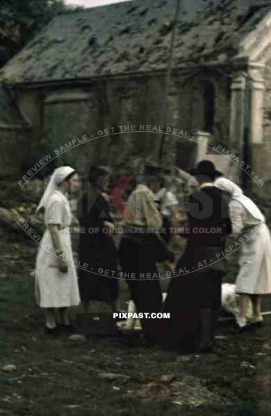 Bomb damage outside of Paris 1943, American aircraft day attack. French police and Luftwaffe soldiers. Palaiseau