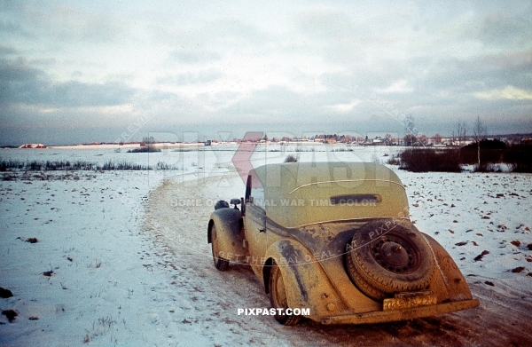 Cabrio army staff car of German war photographer Kriegsberichter Arthur Grimm. Gzhatsk Gagarin 1942