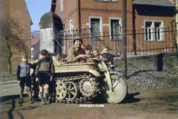 Captured German NSU Klein Kettenkrad half track bike in Normandy France 1944