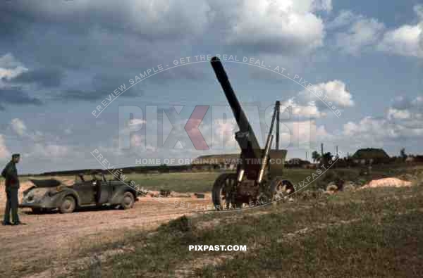 Captured Russian Artillery Cannon beside Ustiluh, Ukraine, 1941, 94. Infantry Division, Staff car,