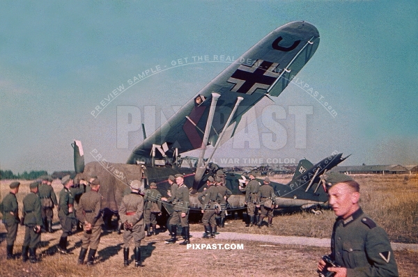 Crashed Luftwaffe Henschel Hs 126. German two-seat reconnaissance and observation aircraft. France 1940
