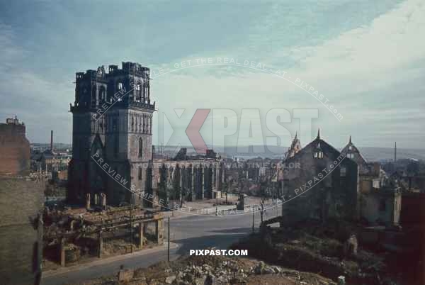Destroyed / Bombed ruins of Kassel in Hessen Germany June 1944. Church St Martin, Martinskirche