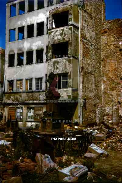destroyed buildings at the Hühnermarkt in Frankfurt, Germany 1945