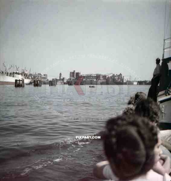 destroyed buildings at the Rüschkanal in Hamburg Finkenwerder, Germany 1946