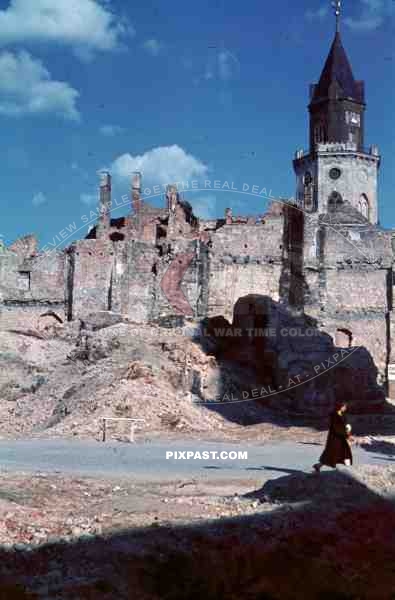 destroyed buildings and the Trinitarian Tower in Lublin, Poland 1941