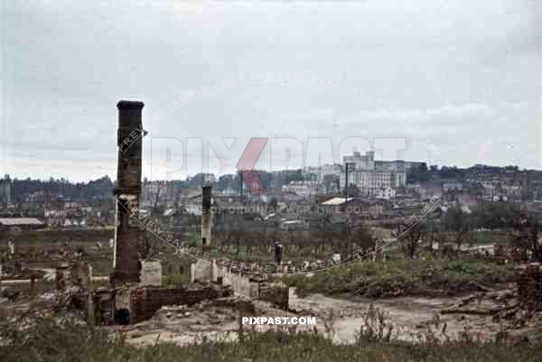 destroyed buildings in Minsk, Belarus, Russia 1941