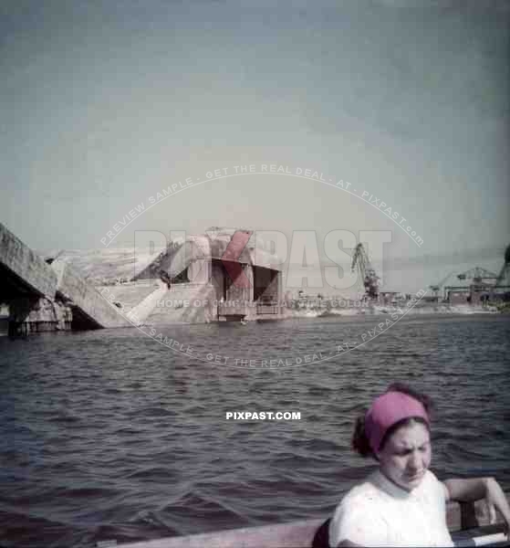 destroyed bunker Fink II at the Rüschkanal in Hamburg Finkenwerder, Germany 1946