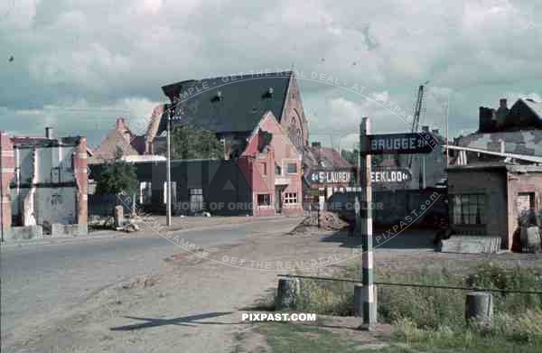 destroyed church in Balgerhoeke, Belgium 1940