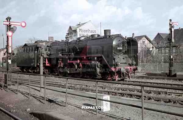 Deutsche Reichsbahn(DRB) 52 Lokomotive Train Leipzig Hauptbahnhof Main Train Station 1940. Mobelhaus Hoffner.