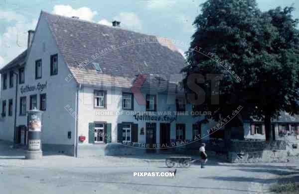 Durrheim Gasthaus Engel, 1936, post box and poster adverts, cart.