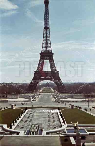 view from the Trocadéro et du 11 Novembre to the Eiffel Tower in Paris, France 1937