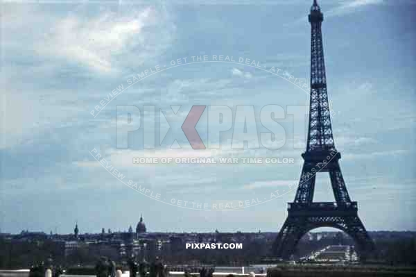 view from the Trocadéro et du 11 Novembre to the Eiffel Tower in Paris, France 1937